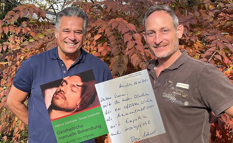 Lieber Kollege Dr. Helmut Stahlhofer – vielen Dank, dass du mich in der Kunst der Hände unterwiesen hast und hierdurch mein therapeutisches Wirken massiv erweitert und bereichert hast! Herausragend dabei ist, mit wie viel Herzblut Du Dein Fachgebiet pflegst und mit welcher Akribie auch historische Aufzeichnungen gesichtet und hinsichtlich Effektivität und Technik untersucht werden. Der hohe Anteil von erstbeschreibenden Hausärzten weist dabei auf den zu fordernden Stellenwert im ambulanten Bereich hin. Besonders habe ich mich über Deine persönlichen, telef. Glückwünsche zur Erlangung der Zusatzbezeichnung gefreut!