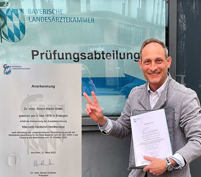 Herr Dr. Simon Sitter durfte im Zeitraum 2019-2020-12 /2021 Kunst des Heilens mit den Händen in den Kursen des Bayerischen Ärzteseminar für Manuelle Medizin unter der Leitung von Herrn Dr. med. Helmut Stahlhofer erlernen. Dr. Stahlhofer – der ursprünglich seinerseits die Kunst bei einem direkten Schüler von Hans Sell erlernte, ist selbst Begründer und zwischenzeitlich Ehrenpräsident der Wehrmedizinischen Gesellschaft für manuelle Therapie und Osteopathie (WGCO e.V.) und hat sich vor allem durch die Etablierung der interdisziplinären Lehre einer achtsamen und ganzheitlichen Behandlung, basierend auf einem modernen neurophysiologischen Krankheits-Verständnis verdient gemacht.